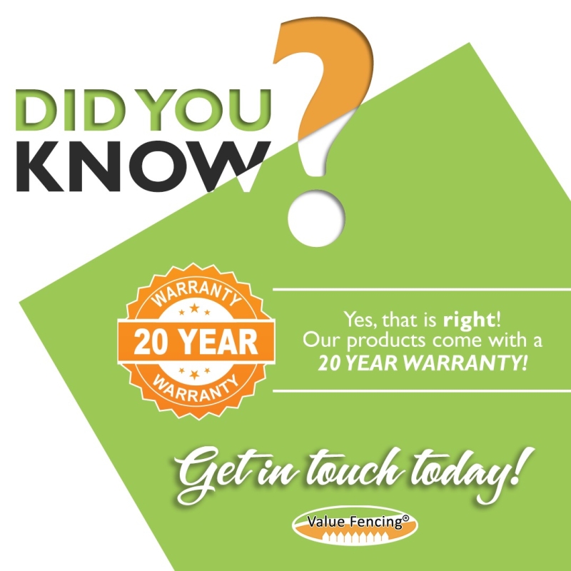 Value Fencing guarantees the quality of installation workmanship for 1 (one) year from the invoice date.